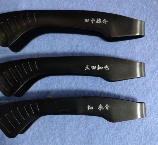 基本左面の空きスペースに金属刃で文字を刻みます。
