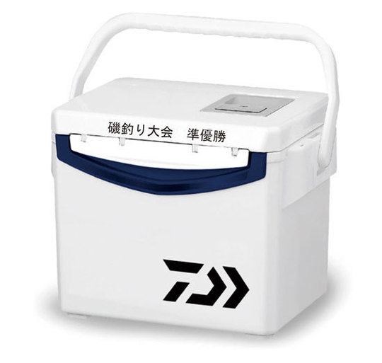 樹脂やプラスティック製のクーラーボックスに刻印します。シールやステッカー、カッティングシートではないので取れたり剥がれたりする心配はありません。着色も可能ですので 色を指定ください。